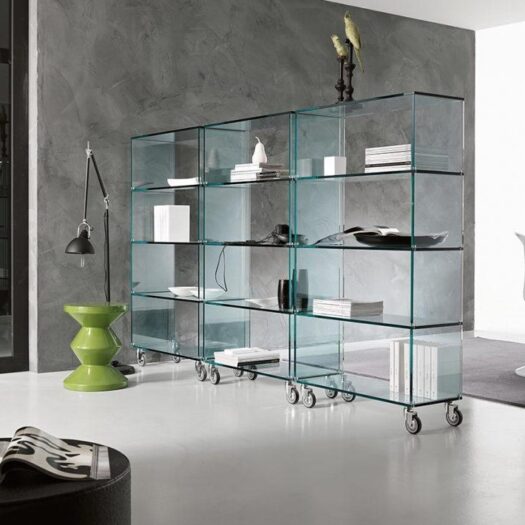 Мы применяем только безопасное стекло и соблюдаем безопасность конструкции стеллажей высотой в пару метров. При серьезном повреждении закаленное стекло рассыпается на осколки с затупленными краями) или триплекс (не рассыпается на осколки, а остается на клеящей пленке). Также стекла покрываются защитным антиабразивным слоем против царапин.