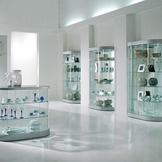 - Прозрачность и видимость: Стекло обеспечивает максимальную видимость представленных товаров, что способствует увеличению интереса покупателей.